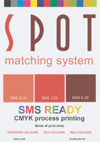 In general A lot of companies insist on printing to ISO 12647 standards and it would simply not make sense for a print shop that is capable of printing the SMS colours NOT to offer printing to ISO 12647 standards, since that is only a simple matter of doing a quick in-house colour conversion from - say FOGRA39 to the in-house standard for the respective press using a CMYK-to-CMYK device link icc profile. This may sound awfully expensive and terribly time consuming, but actually any print shop can do this in-house during down time in prepress and the cost of the equipment required to create such device link icc profiles is only about EUR 7.000 or even less if you shop around. Spot-Nordic for instance offers solutions to do this - see https://www.spot-nordic.com/qc - or feel free to contact info@spot-nordic.com to discuss your options. You can take as much time as you like to create your device link icc profiles and once you are ready to get certified, just send us your measurements and we will issue the SMS READY certificate, valid for 12 months for your print shop. It is simply up to each print shop to decide whether they are ready to commit to keeping SMS colours within a MAX dE2000 of 3, a MAX dE of 2 or even less. This depends a lot on the printing process but dE00 of 3 is the red line. Print shops in all sectors of printing, interested in offering printing of SMS colours may want to consider buying the i1 Pro 3 profiling solution that Spot-Nordic offers to customers worldwide - see www.spot-nordic.com/qc, which is in our opinion the easiest and least expensive way to adjust printers and presses, analog and digital to universal standards, - enabling the same colour output from all your printers and presses. We have put together appropriate icc profiling packages for print shops here and here for evaluation. But to be on the safe side, contact info@spot-nordic.com and have a discussion about what substrates you are working with before you decide which option is right for you. If you are confident your print shop is all set to go and that printing SMS colours will not be a problem at all, feel free to order your SMS READY certification. You can then ask us to provide you with the correct SMS READY control strips ready for the print standards you are offering (typically Fogra or G7) - or use the opportunity and have one employee (the person that will be responsible for checking SMS colours and will be our contact person) first do the included SMS READY Expert training and then have him or her prepare the SMS READY control strips - and we will of course be right there to make sure that everything is perfect. If in doubt, you can download our free SMS control strips here, convert them to your CMYK icc profile in Adobe Photoshop using Absolute Colorimetric Rendering Intent, print them and when you have reached the dE00 you are comfortable with on the presses where SMS colours will be printed, purchase your SMS READY certification - or order it from us. Feel free to contact sms@spot-nordic.com if you need assistance with this. Once your order has been processed we will ask you to send your results to sms@spot-nordic.com and following that we will issue your SMS READY certificate. SMS READY certification for product manufacturers Digital Displays/Monitors/TV displays/LED displays Manufacturers in these categories that manufacture digital displays that can be calibrated with display calibrators such as the Calibrite or Spyder display calibrators and are capable of displaying at least the Home & Office version of the SMS colours - requiring the physical colourspace of the display to be at least 45% NTSC/60% sRGB (for a certification for the ECO (e), Standard Home & Office (o) and MAX Home & Office (xo)) - or 100% of the sRGB gamut for a full range SMS READY certificate - ensuring correct displaying of all 5 colour palettes of the Spot Matching System, can apply for an SMS READY certificate for their displays. Contact sms@spot-nordic.com for more information and assistance. Colourserver + RIP / Workflow server Manufacturers of workflow servers, that are capable of outputting PDF files prepared with the icc profiles included for reproduction of SMS colours for either direct or indirect output can apply for an SMS READY certificate. Contact sms@spot-nordic.com for more information and assistance. Colourserver + RIP + Printer/Press + (optional) substrate. Manufacturers of Colourservers, digital printers/digital presses/proofing devices + optionally substrates, that are capable of handling PDF files prepared with icc profiles included for reproduction of SMS colours for direct output and consistent printing of SMS colour to standards within a combined MAX dE00 of 2 or less can apply for an SMS READY certificate. Contact sms@spot-nordic.com for more information and assistance. Inks, dyes and paint (any material) Manufacturers in these categories that have the technology and capacity to commit to producing a recipe and a colour sample (if requested), ink, dye or paint which, when applied to the intended material, will match any requested SMS colour, visually and instrumentally, in D50 or D65 light, with a MAX dE2000 difference of 1 or less, once the sample is dry, can apply for an SMS READY certificate for their products. Contact sms@spot-nordic.com for more information and assistance. Paper/substrates suited for printing Papertypes that are consistent with papertypes suited for printing of SMS colours - see here, that the manufacturer commits to manufacture with a white point within a dE2000 of 2 or less from the respective standard white point can apply for an SMS READY certificate. Contact sms@spot-nordic.com for more information and assistance. Printer/digital press + Paper/Media